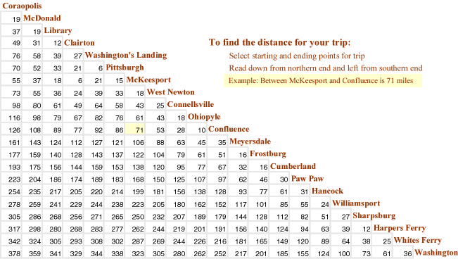 This page is part of the Allegheny Trail Alliance's site in support of the Great Allegheny Passage, a motor-free recreational rail trail connecting Pittsburgh PA and Cumberland MD. Copyright © 1998, 1999, 2000, 2001by Allegheny Trail Alliance, Bill Metzger, Mary Shaw, and Roy Weil. Amenity information courtesy of FreeWheeling Easy. We encourage you to create links to this site and to print copies of the maps for your personal use. We prohibit other uses of this site, especially if they generate spam or other mass communications -- see our Privacy Policy.. This page was last modified on 01/01/01. Send email to ATA or contact the ATA or member trails.